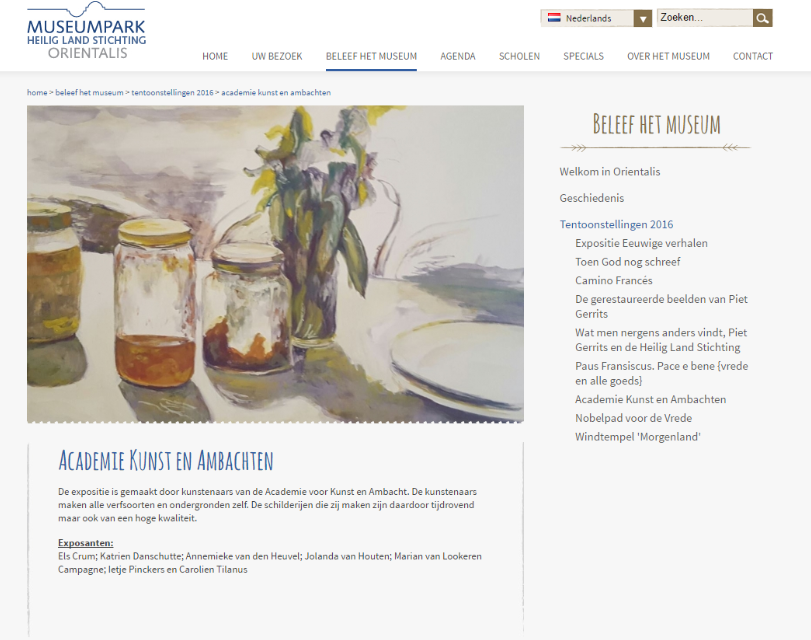 Website Museumpark Orientalis, Heilig Land Stichting, 2016