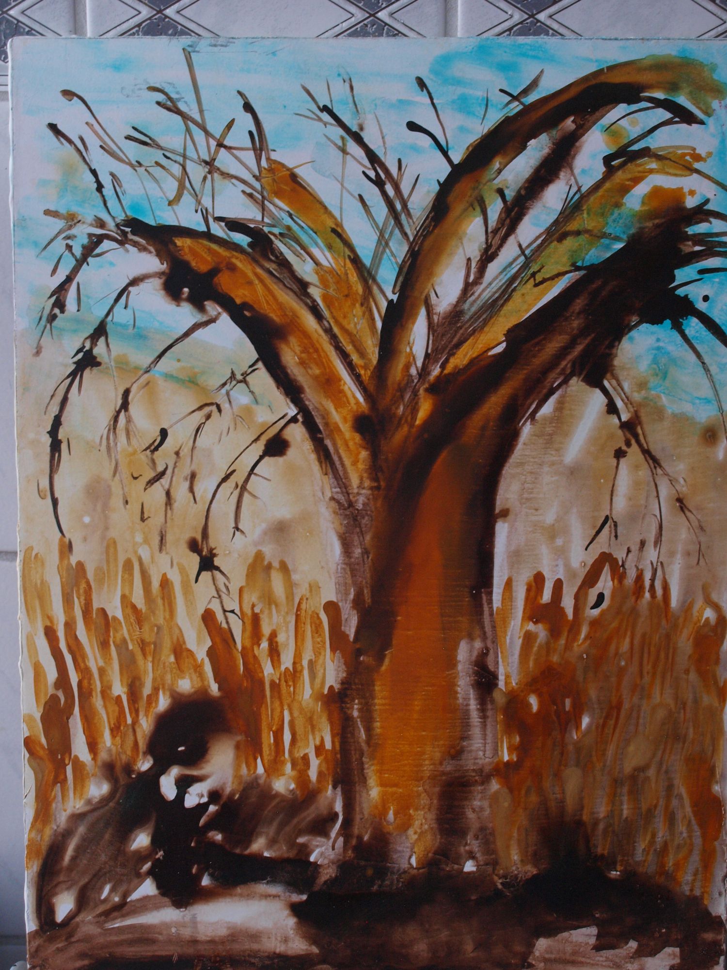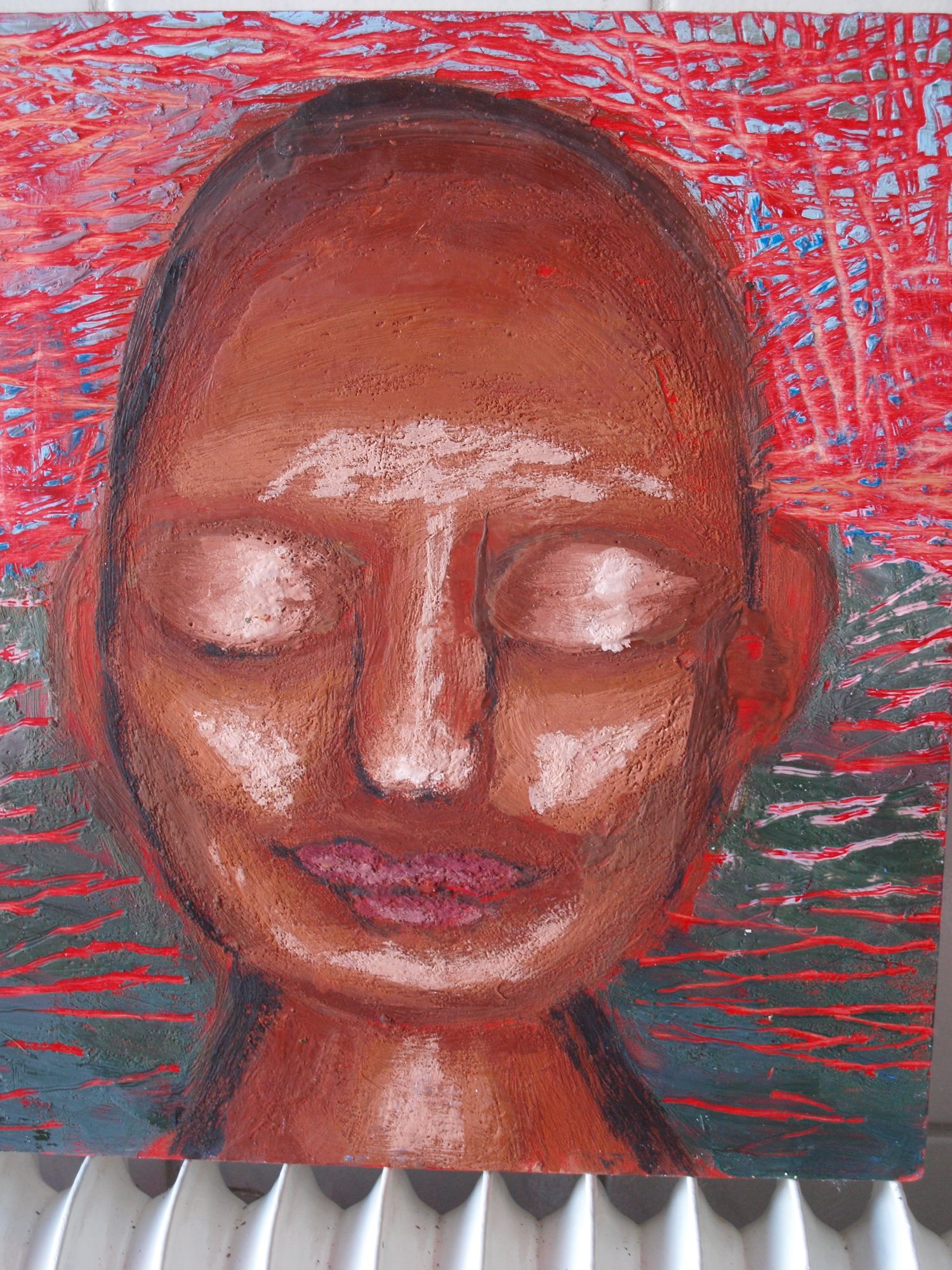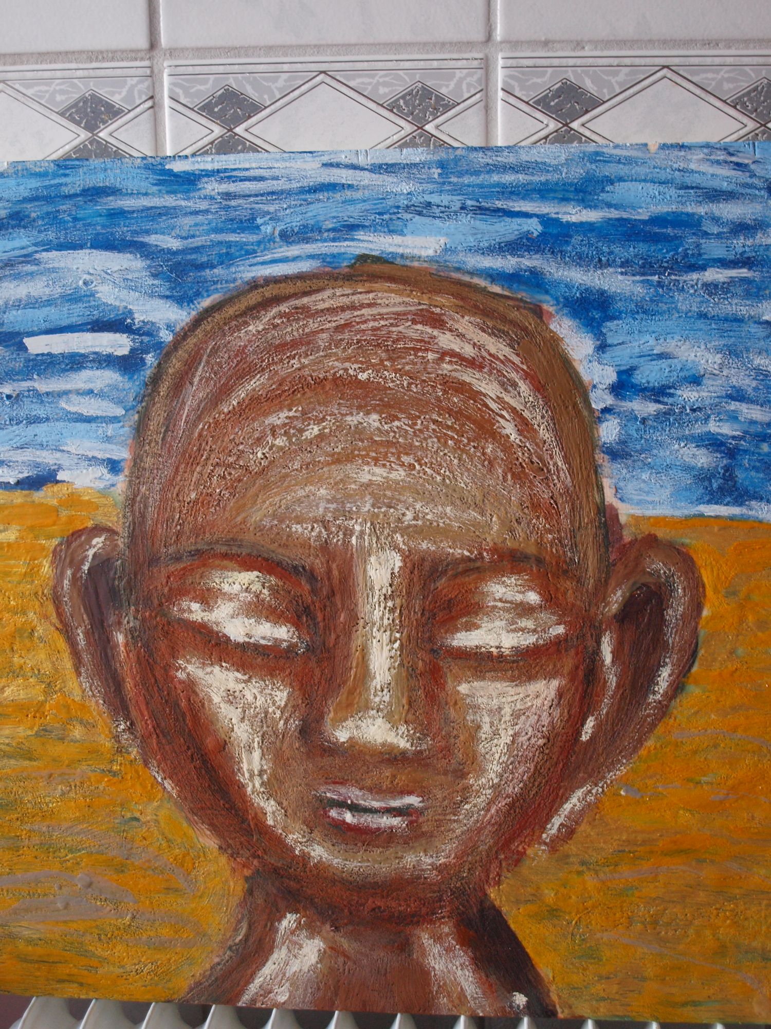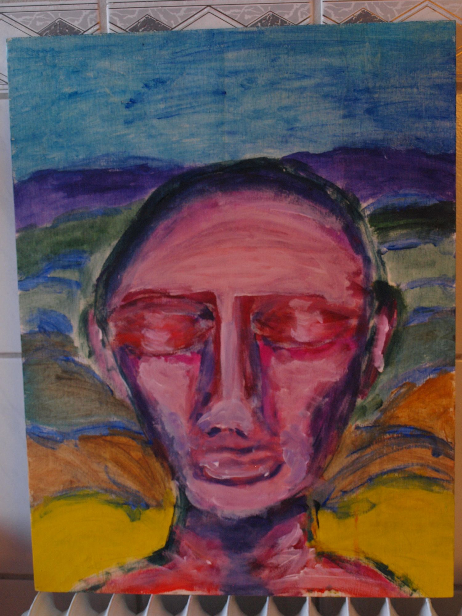 Milarepa. Geschilderd in 2012. Uitleg staat op de pagina van Milarepa.